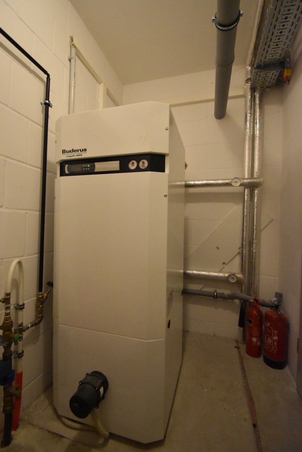 Geothermieanlage mit Wärmepumpe, 20 kW, Fa. Buderus, Fußbodenheizung mit Steuereinheiten je Raum