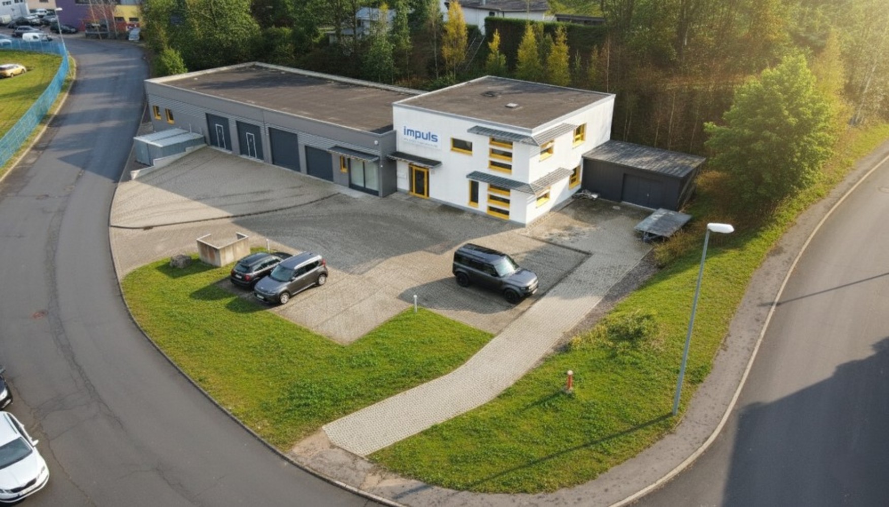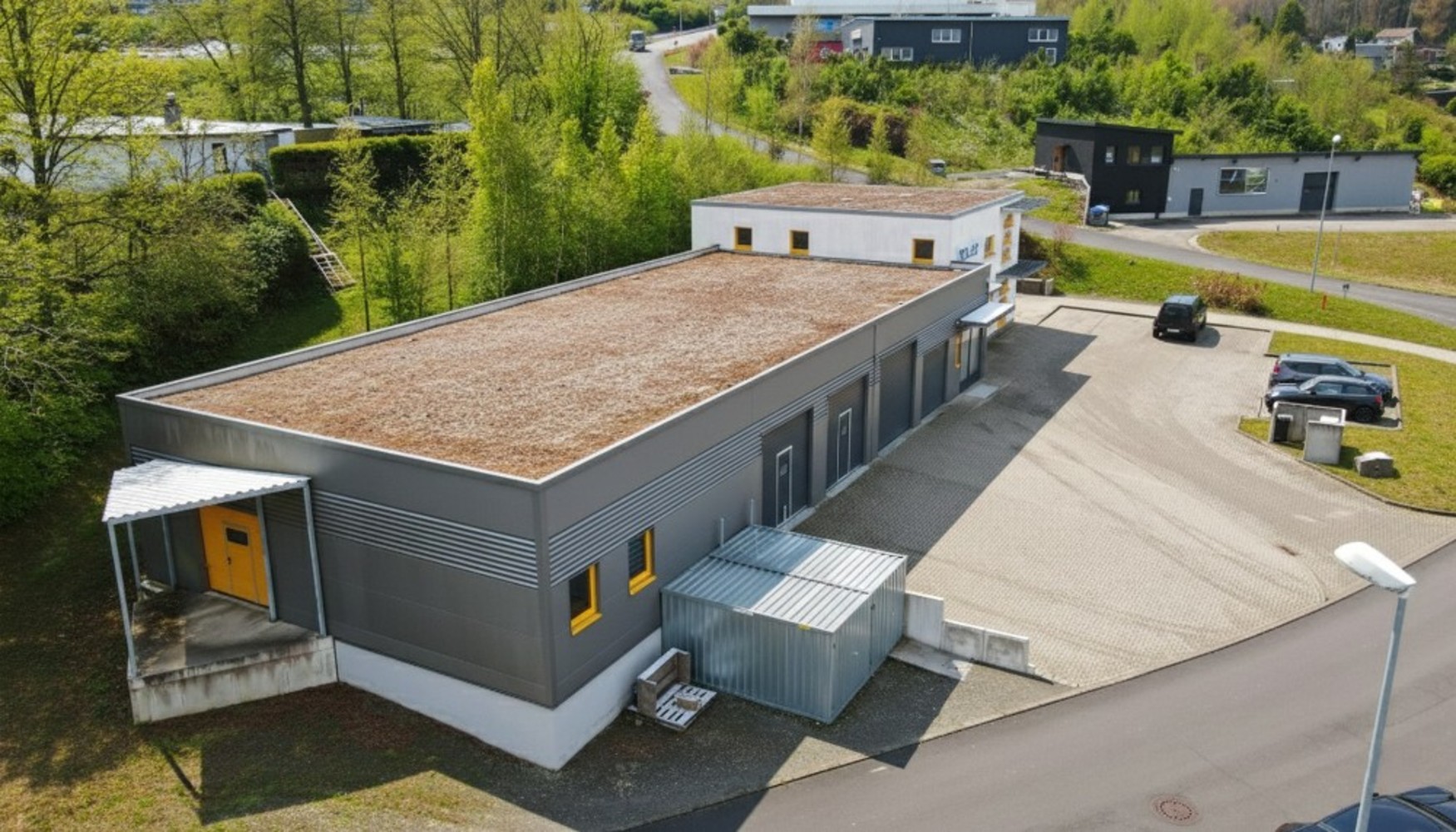 Freistehende Gewerbehalle mit Büro