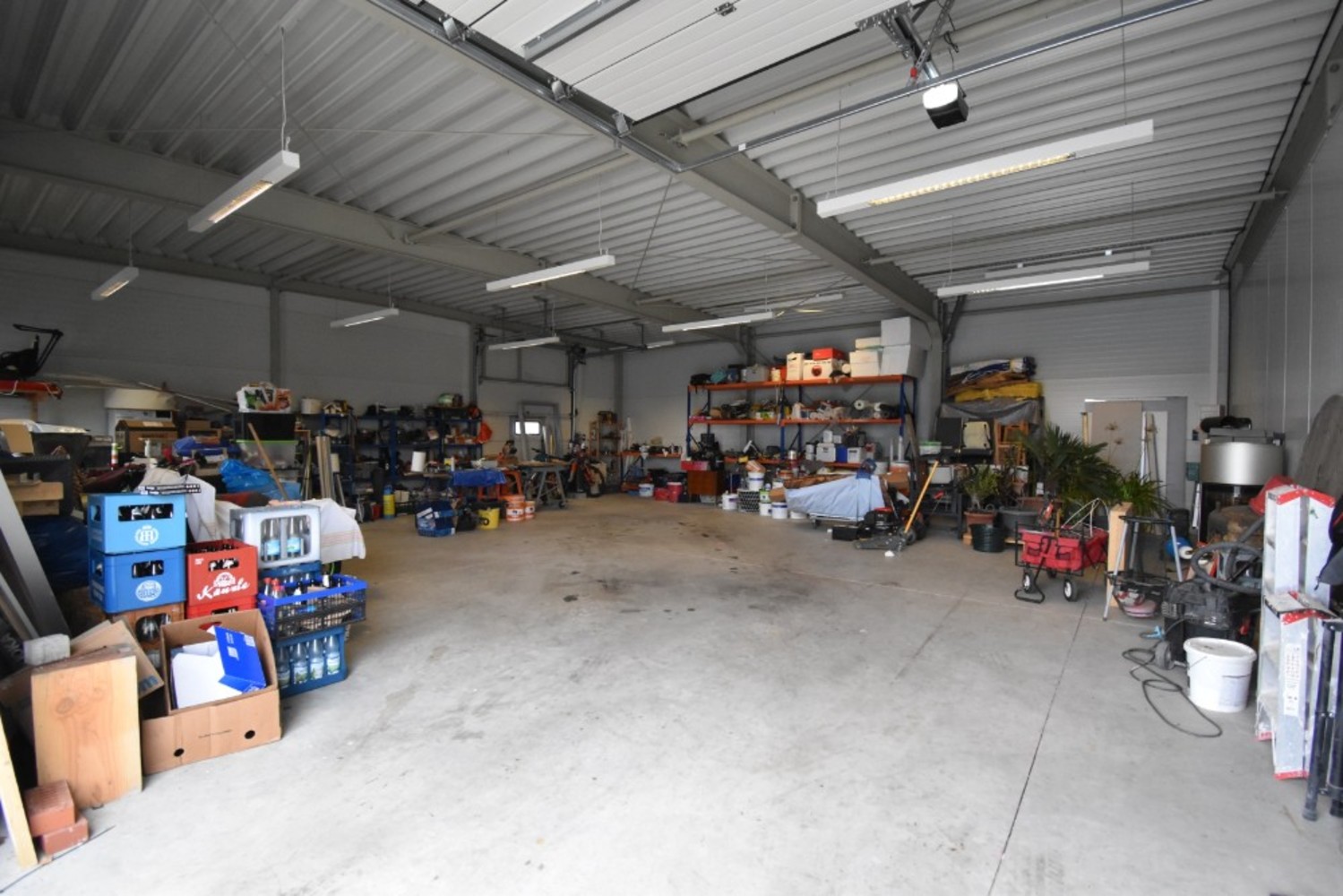 Derzeit ist die Halle in 3 Abteile unterteilt und teilweise vermietet. Jedes Abteil hat einen eigenen Strom- und Wasseranschluss.