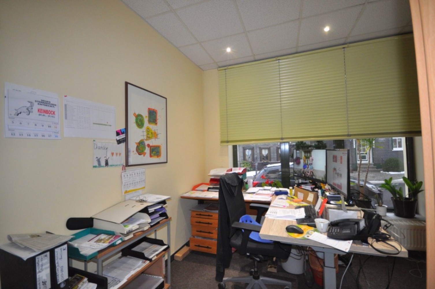 Gewerbefläche über 2 Etagen, 10 Räume, getrennte Sanitäre Anlagen, Aufenthaltsraum inkl. Küche, 2 Lagerräume, Fußböden = teilweise Parkettfußboden mit Nadelfilzteppich, Fliesen