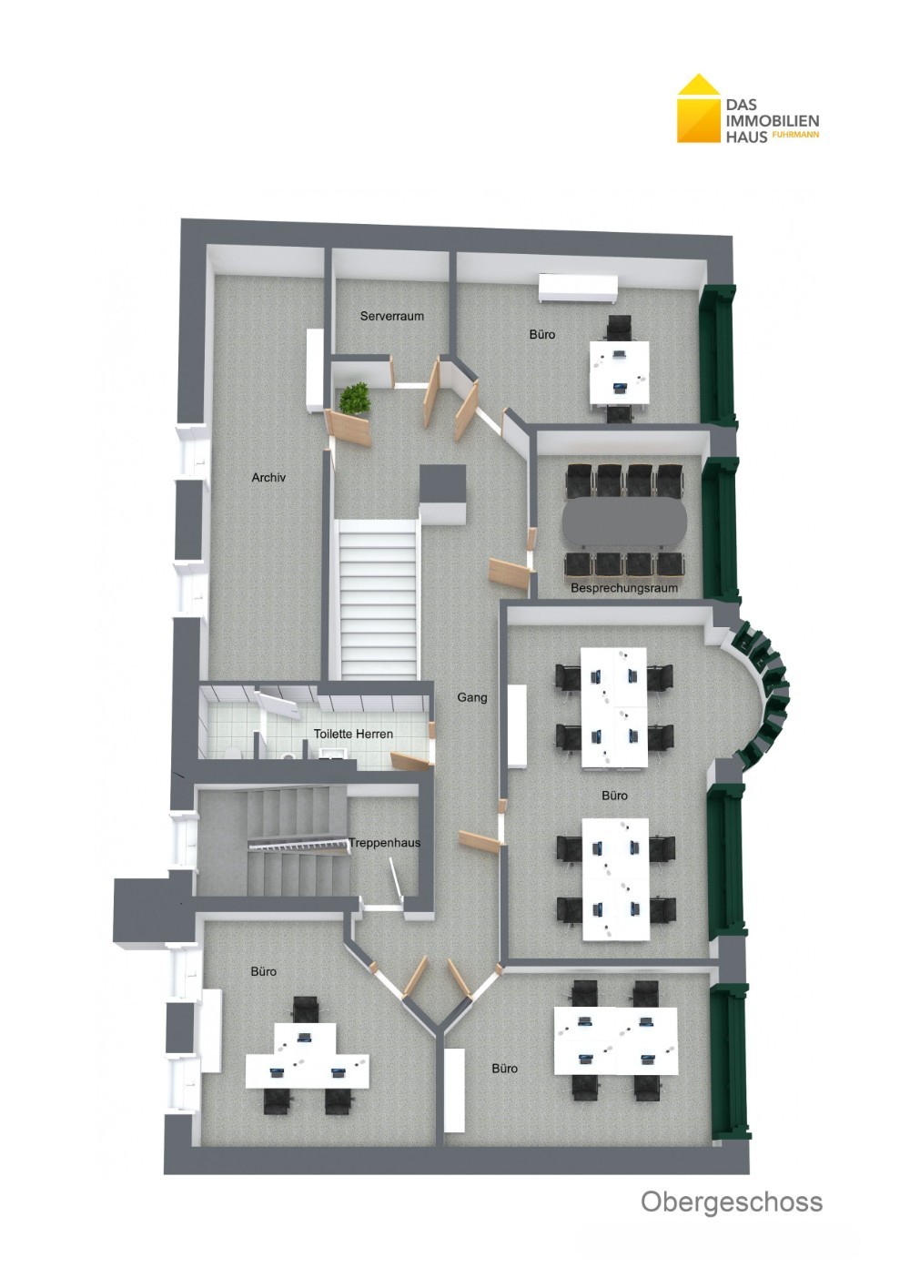 straßenseitig Aluminiumfenster mit 2-fach Verglasung und Rundbogen-Sprossen